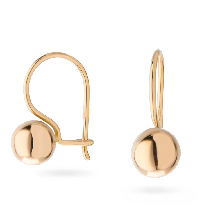 <p><strong>Размеры:</strong></p> <p>длина – 15 мм</p> <p>ширина – 7 мм</p> <p>декоративная часть – 5 мм</p> <h2><strong>Золотые сережки</strong></h2> <p>Серьги изготовлены из красного золота 585 пробы, пленяющего своим очаровательным оттенком. Декоративная часть украшения представлена в виде шара, блестящая поверхность которого удивительно мерцает на свете. Такой дизайн всегда вне времени, ведь подобное оформление является стильным независимо от бурлящих в мире трендов и тенденций моды. Застегивается аксессуар с помощью французского замка, имеющего петельку и крючок. Он очень удобный и не способный травмировать кожу ушей. Серьги одинаково хорошо подходят к повседневной и праздничной одежде, ведь способны придать шарм и элегантность любому образу.</p>
