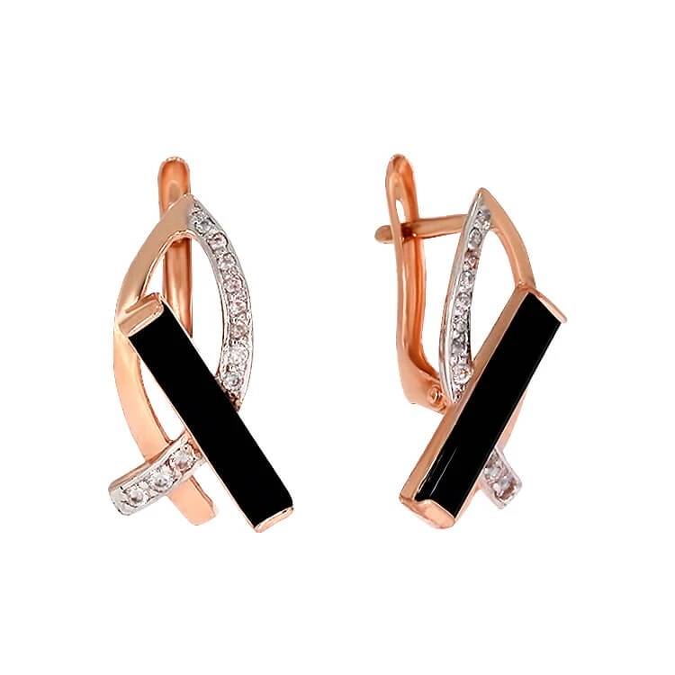 Золотые серьги с агатом черным и фианитами. Это изделие вы сможете заказать с примеркой в одном из наших магазинов в Киеве, Запорожье, Днепре, Мариуполе, Львове, Одессе, Чернигове, Харькове.