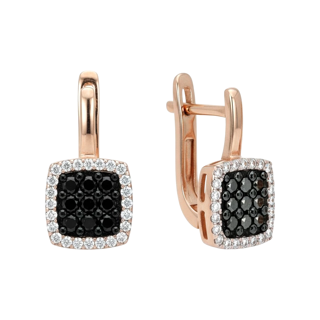 Сережки з Прозорим Діамантом 0,138ct та Чорним Діамантом 0,234ct із червоного золота 585°, арт. 208ч (арт. 208ч)