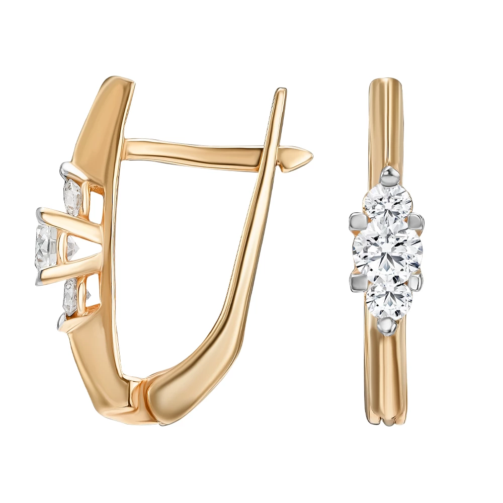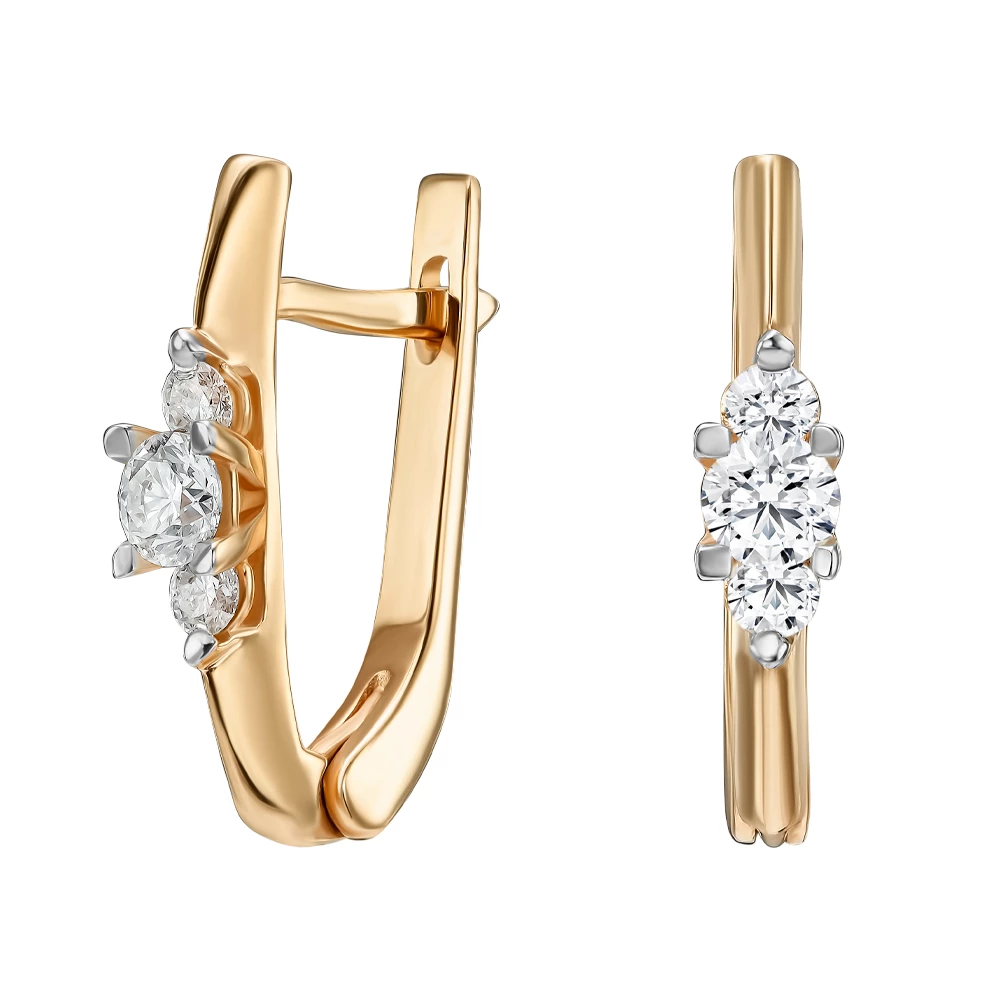 <p><strong>Размер:</strong></p> <p>длина - 17 мм</p> <p>ширина - 4 мм</p> <p>длина крючка к застежке - 7 мм</p> <p>длина швензы - 11 мм</p> <p>размер декоративной части - 9 х 4 мм</p> <h2><strong>Золотые серьги с бриллиантами.</strong></h2> <p>Данная модель сережек изготовлена из красного золота 585 пробы. Каждая серьга инкрустирована тремя белыми бриллиантами, прочно закрепленными в корнеровом касте. Каждый камешек имеет премиальную огранку, позволяющую им переливаться всеми цветами радуги. Надежная английская застежка обеспечивает комфортное крепление украшения и позволяет носить его не снимая. Этот аксессуар имеет элегантный дизайн, сочетающий классический стиль и современные тенденции. Такие серьги отлично подходят как для повседневной носки, так и для особых случаев.</p>