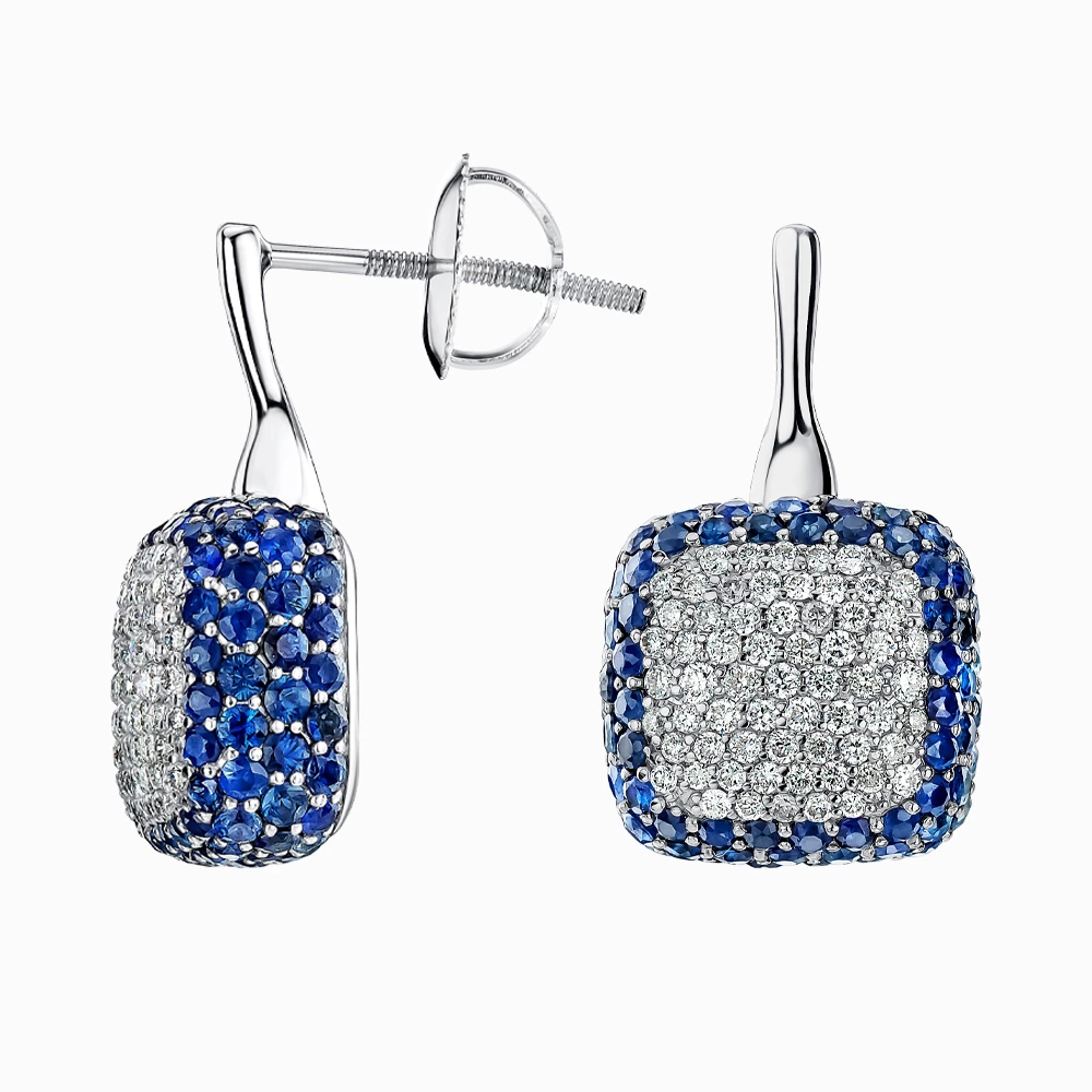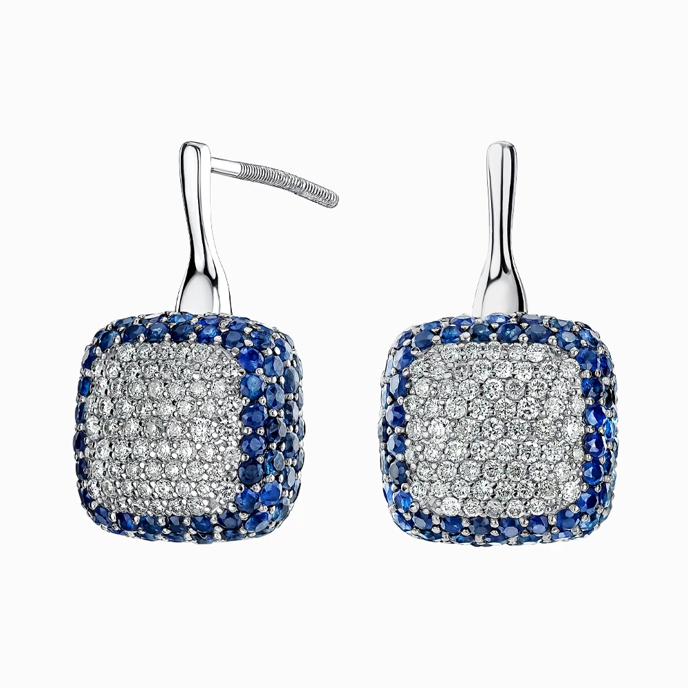 Золотi сережки-пусети з діамантами з сапфіром (арт. 910027260S-86-2155-2370)
