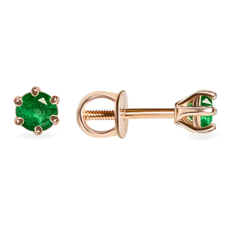 Золотые серьги-пусеты с изумрудом. Многие женщины предпочитают украшения с изумрудом, у которого очень красивый зеленый оттенок. Серьги - пусеты, строгие и лаконичные украшения уместны как на деловой встрече, так и на романтическом свидании. Размеры изделия: - размер декоративной части - 5мм Зажим - винтовой замок
