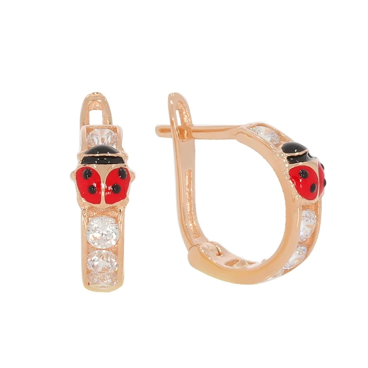 Золотые детские серьги с куб. окс. циркония Божья коровка. Серьги выполнены из золота 585 пробы, с английским замком.