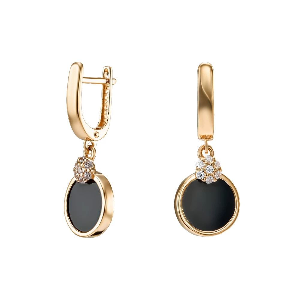 Золотi сережки-підвіски з агатом (арт. 449816)