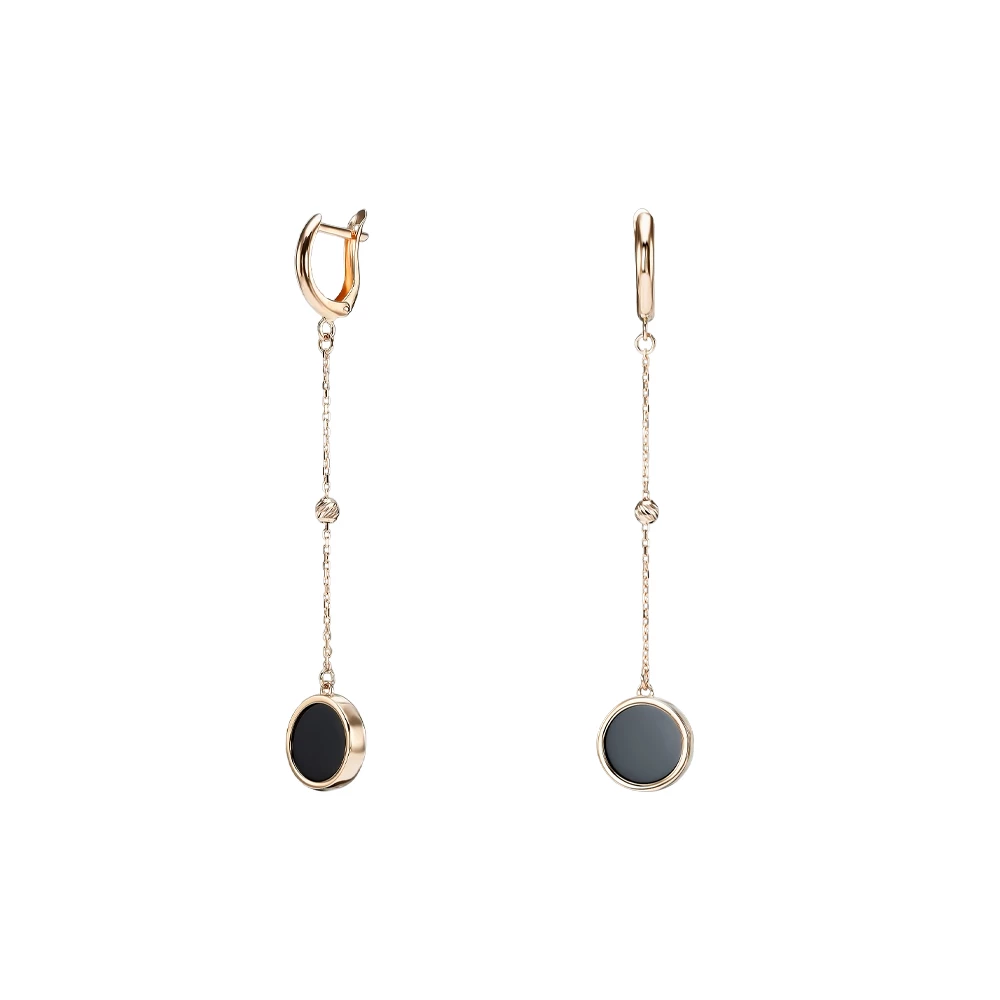 Золотi сережки-підвіски з агатом (арт. 449818)