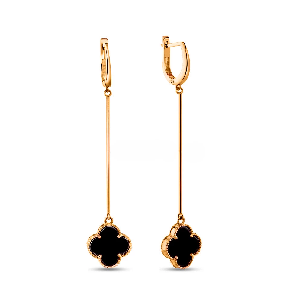 Золотi сережки-підвіски з оніксом