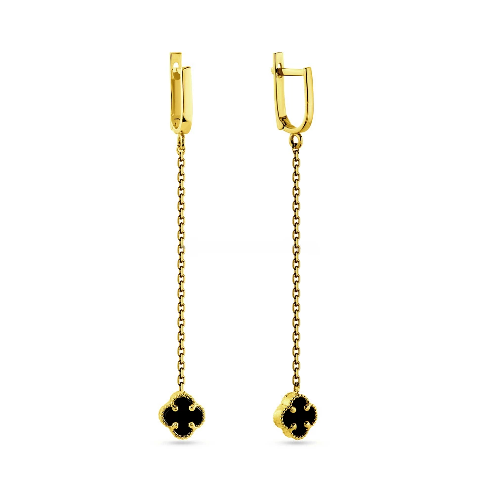 Золотi сережки-підвіски з оніксом (арт. 106324/7жо)