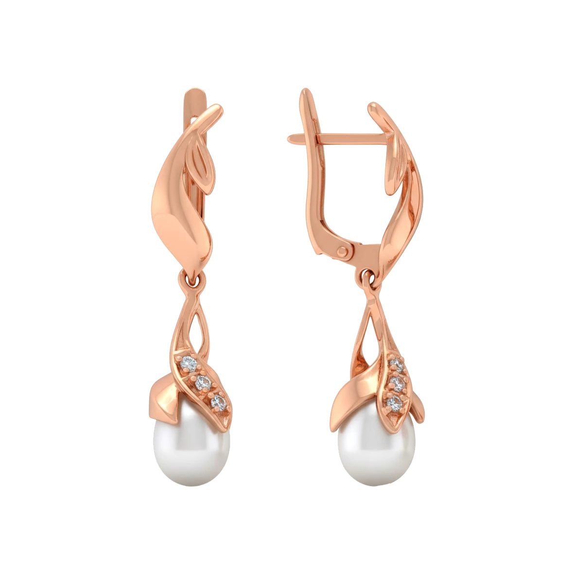 Золотi сережки-підвіски з перлами (арт. 420279)