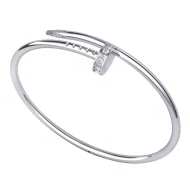 Жесткий браслет, как правило, имеет фиксированную форму и не поддается изменениям в размере. В частности, это привлекает тех, кто ценит четкие линии и геометрические формы в ювелирных изделиях. Одним из самых популярных вариантов является браслет гвоздь серебро - эта модель, выполненная в стиле бренда Картье стала желанной для модниц всего мира, полюбившись за необычный и в то же время лаконичный дизайн.