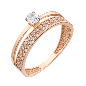 Кольцо с фианитами красное золото