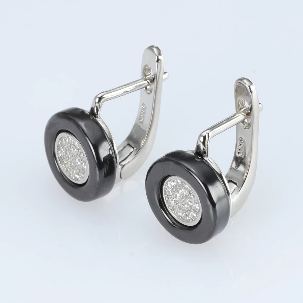 <p><strong>Размер:</strong></p> <p>длина – 11 мм</p> <p>ширина – 9 мм</p> <p>длина крючка к застежке – 9 мм</p> <h2><strong>Серебряные серьги с фианитами и керамикой</strong></h2> <p>Удивительные серьги изготовлены из серебра 925 пробы. Изюминкой украшения является круглая вставка из черной керамики, подчеркивающая его уникальность и современный характер. В центре расположена инкрустация из ярких белых фианитов, наделяющая роскошным блеском и акцентирующая на изысканных деталях. Английская застежка обеспечивает удобство и надежность во время ношения, а родиевое покрытие не только защищает серебро от потемнения, но и придает изделию яркий белый блеск. Эти серьги идеально дополнят любой Ваш образ, придавая нотку элегантности и выразительности.</p>