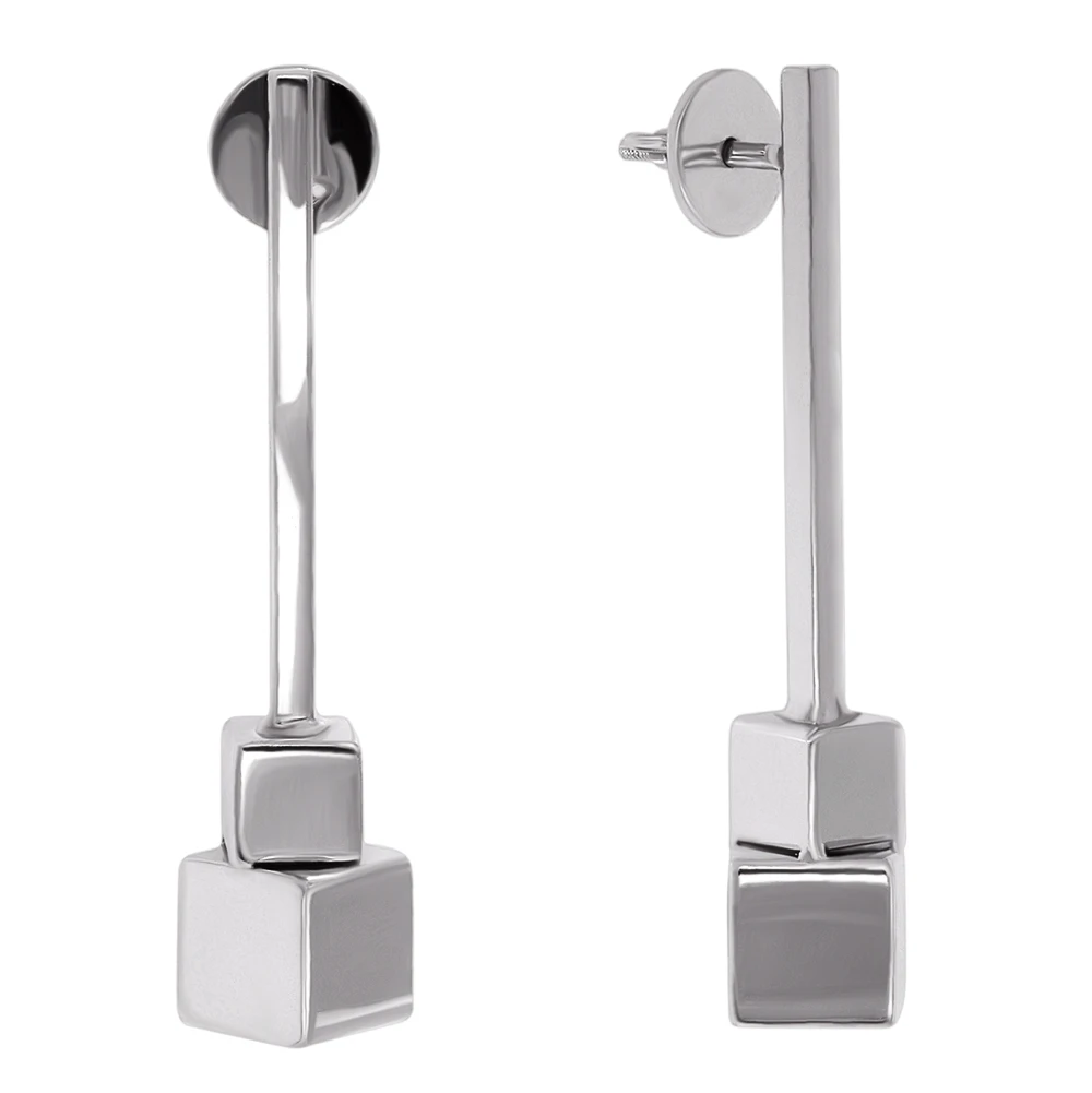 Серьги из серебра 925 пробы. Серебряные серьги с геометрическими фигурами стали модным хитом современного ювелирного мира. Серебряные серьги смотрятся очень стильно и привлекательно. Тип застежки - пусет.