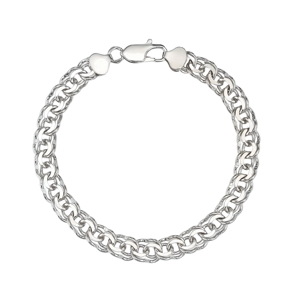 <p><strong>Размер:</strong></p> <p>ширина цепочки - 8 мм</p> <h2><strong>Серебряный браслет плетение бисмарк</strong></h2> <p>Браслет изготовлен из серебра 925 пробы. Цепочка выполнена в плетении бисмарк, в данном случае, она отличается своей массивностью, что делает браслет броским и выразительным аксессуаром. Такая структура плетения обеспечивает надежность и долговечность изделия, делая его отличным вариантом для ежедневного ношения. Родиевое покрытие обеспечивает не только защиту от износа, а и наделяет благородным белым цветом. Карабиновая застежка гарантирует комфорт и безопасность при ношении. Этот браслет станет отличным выбором для тех, кто ценит стиль и качество. Он может стать отличным подарком для близкого человека или идеальным аксессуаром для себя.</p>