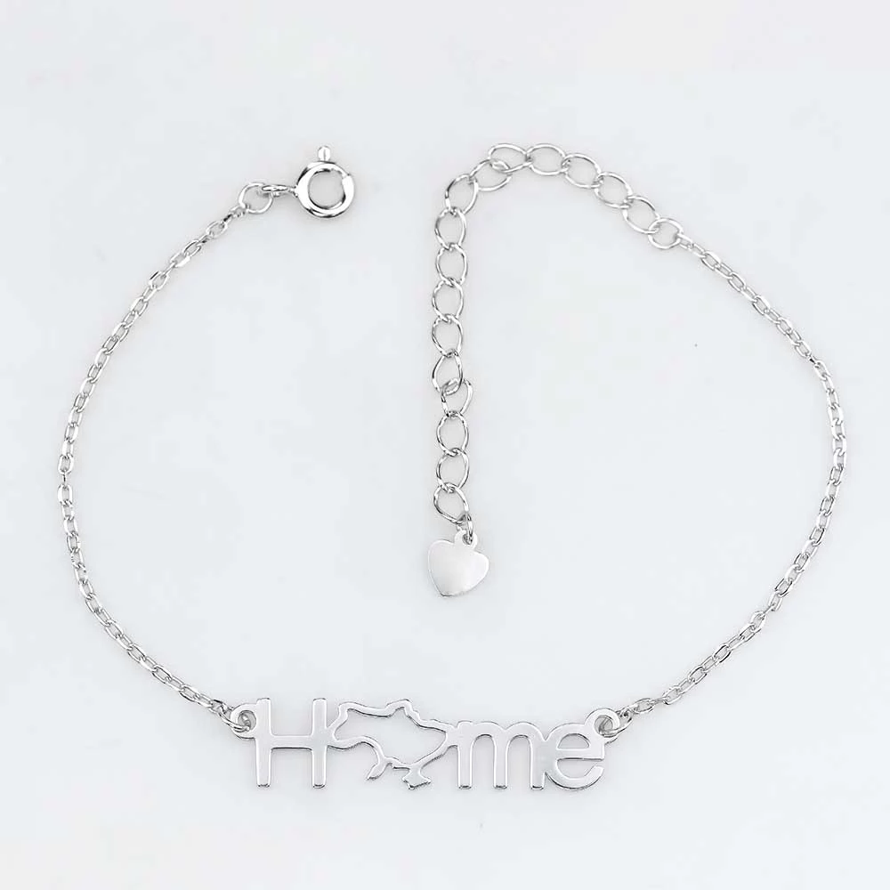 <p><strong>Размер:</strong></p> <p>ширина подвески - 1,0 см</p> <p>длина подвески - 3,5 см</p> <h2><strong>Серебряный браслет “Украина”.</strong></h2> <p>Изысканный браслет, выполненный из серебра 925 пробы и покрытый родием. Это ювелирное изделие сочетает в себе нежную цепочку в надежном якорном плетении и стильную подвеску в виде слова "Home", в котором вместо буквы О изображена карта Украины. Фиксируется браслет с помощью удобного шпрингельного замочка, благодаря дополнительным звеньям на конце цепочки можно легко регулировать размер. Также украшение покрыто родием, что делает его еще более блестящим и износостойким. Такой изящный аксессуар не только удачно дополнит любой Ваш образ, но и всегда будет напоминать Вам о доме где бы Вы ни были.</p> <p>Изделие продается в фирменной упаковке «Золотая королева».</p>