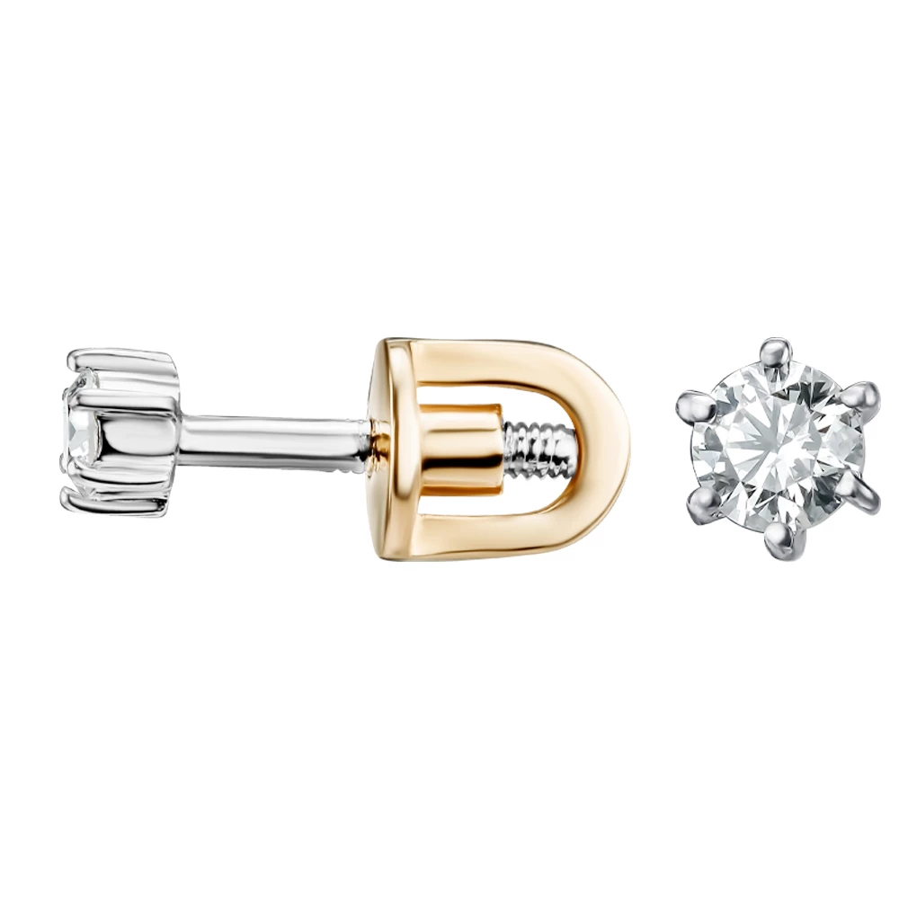 <p><strong>Размер:</strong></p> <p>Длина серьги – 10 мм</p> <p>Длина штифта – 8 мм</p> <p>Диаметр вставки – 3 мм х 3 мм</p> <h2><strong>Золотой пусет в одно ухо с бриллиантами</strong></h2> <p>Аккуратный пусет выполнен в сочетании красного и белого цветов золота 585 пробы. Украшение имеет штифт с резьбой и замок с защитой от давления штифта на кожу. Бриллиант расположен в шести крапанах и эта закрепка известна также под названием «Tiffany». Серьгу можно носить как дополнительный аксессуар во втором или третьем проколе или создать собственный комплект в сочетании с украшением из другой пары</p>