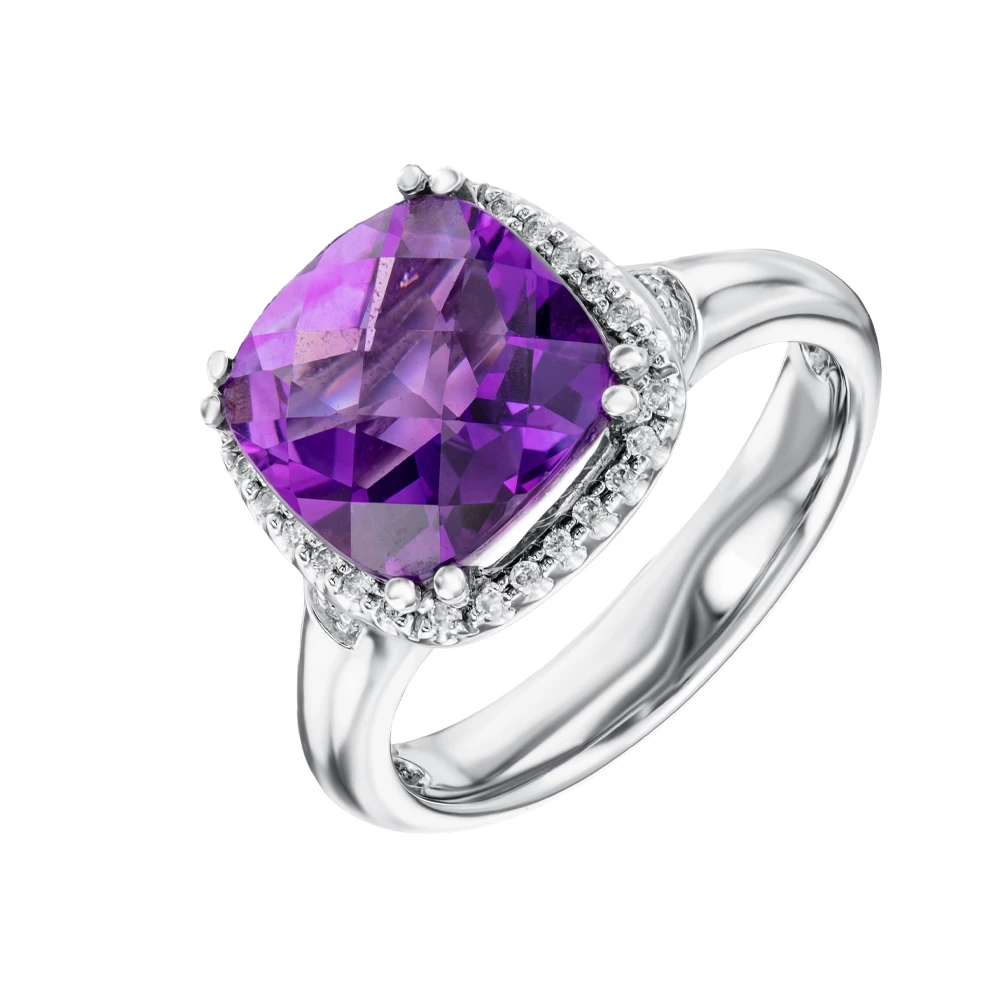 Золотое кольцо с бриллиантами с аметистом (арт. 55-93С065AF-621)