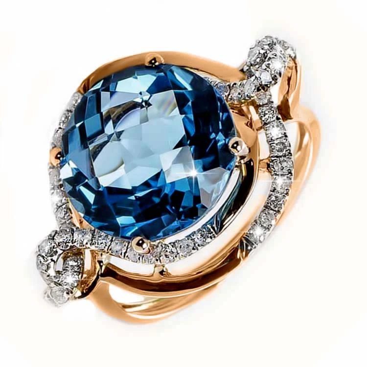 Золотое кольцо с бриллиантами с топазом swiss blue