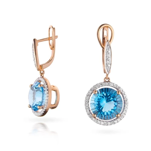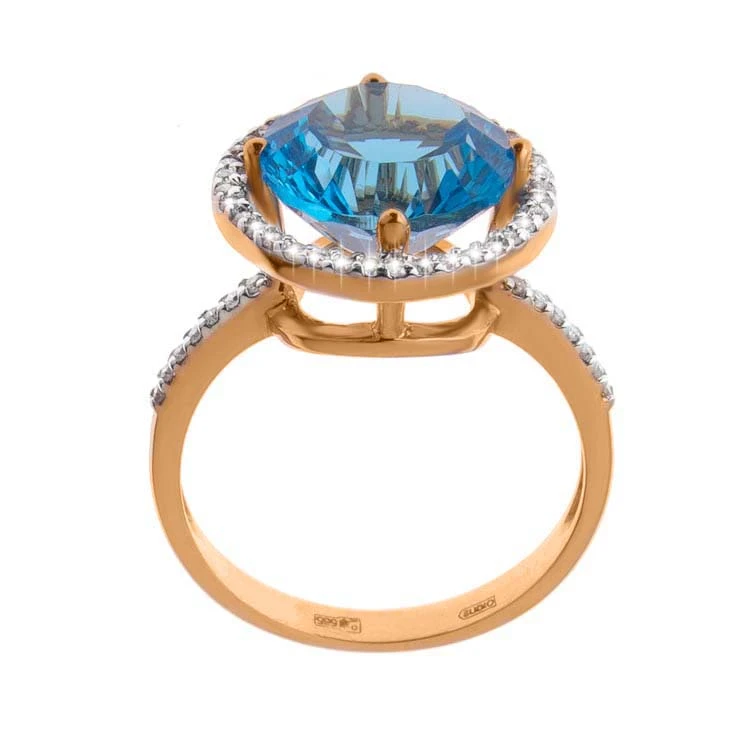 Золотое кольцо с бриллиантами с топазом swiss blue