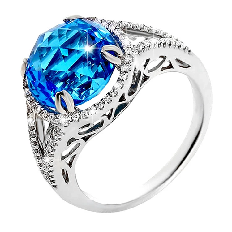 Золотое кольцо с бриллиантами с топазом swiss blue
