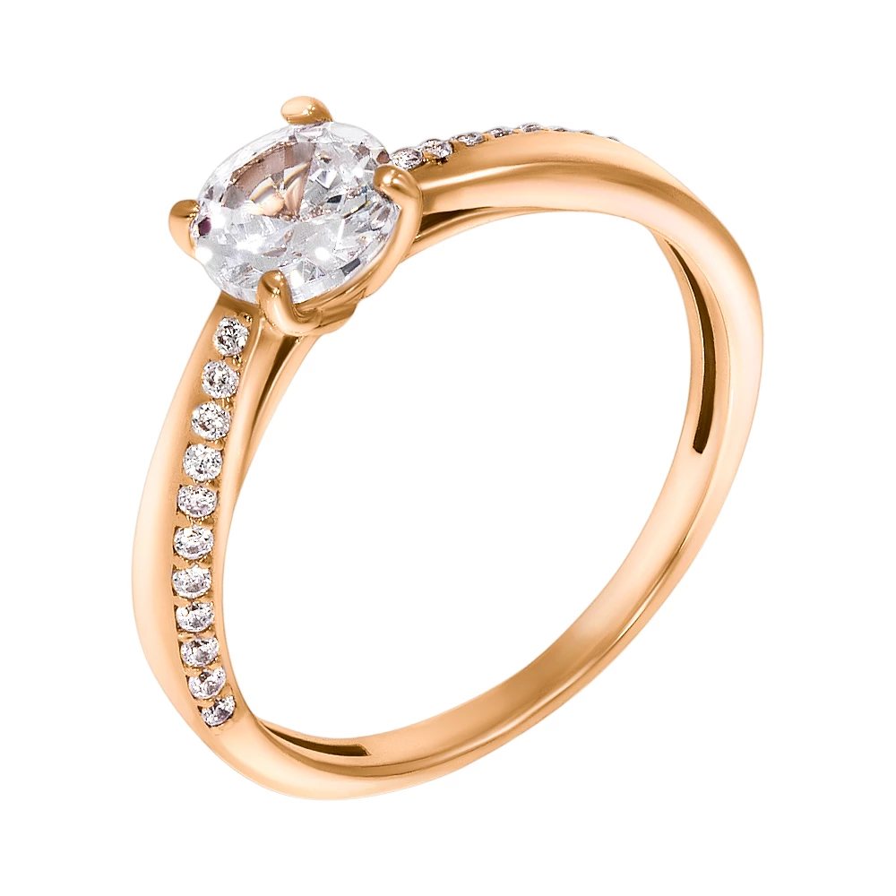 Кольцо из красного золота с куб. окс. циркония. Элегантное золотое кольцо будет смотреться уместно и с повседневным, и с вечерним образом.