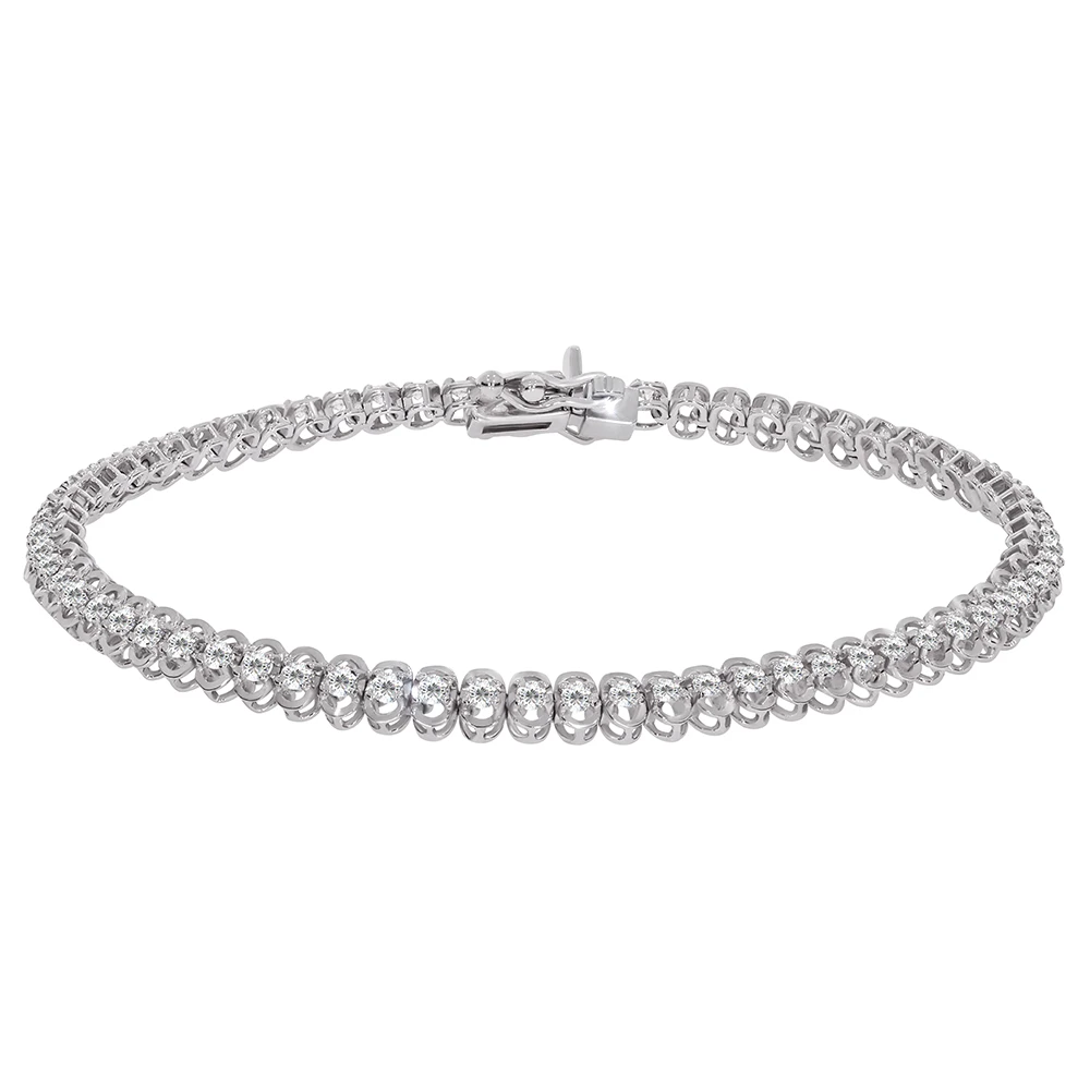 <p><strong>Размеры:</strong></p> <p>ширина - 5 мм</p> <p>размер вставок - 2 мм</p> <h2><strong>Золотой браслет с бриллиантами.</strong></h2> <p>Элегантный теннисный браслет из белого золота 585 пробы с белыми бриллиантами. Эта изысканная модель содержит 67 невероятных бриллиантов, каждый из которых имеет премиальную огранку и надежно закреплен в крапановом касте. Изделие оснащено коробчатым замком с дополнительными предохранительными петельками, что обеспечивает надежную фиксацию украшения на запястье. Металл покрыт слоем родия, что защищает его от повреждений и придает роскошный белый цвет. Такой аксессуар непременно будет привлекать взгляды своим непревзойденным блестящим мерцанием. Бриллиантовый браслет станет идеальным дополнением к любому Вашему образу – от делового до праздничного, придавая ему особый нежный шарм.</p>