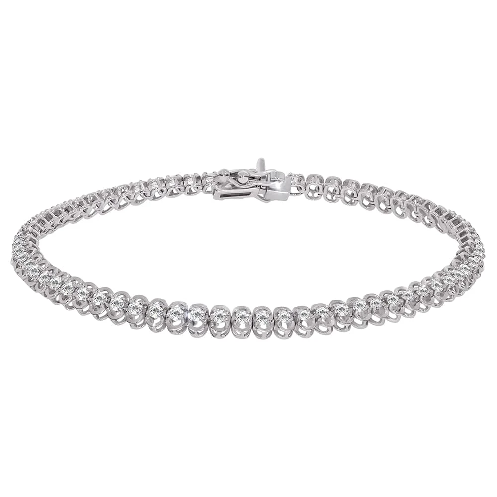 Браслет в белом золоте 585 пробы с бриллиантами. Профессиональная огранка камней в комбинации драгоценного метала - отличный подарок близкому человеку.
