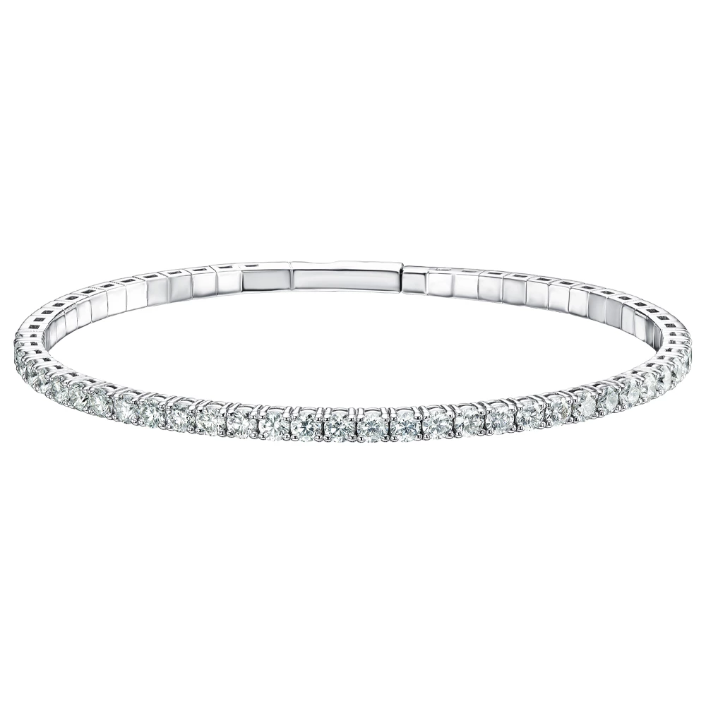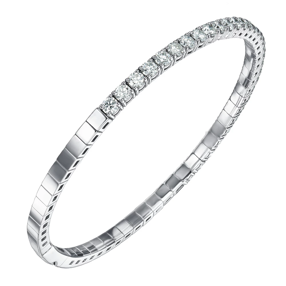 <p><strong>Размер:</strong></p> <p>ширина – 3 мм</p> <h2><strong>Золотой браслет с бриллиантами</strong></h2> <p>Непревзойденный жесткий браслет из белого золота 585 пробы, влюбляющий в себя с первого взгляда. Он инкрустирован роскошными белыми бриллиантами с безупречной премиальной огранкой, наделяемой этим удивительным сиянием. Каждый камень надежно закреплен в четырех лапках крапанового каста, что делает его естественный блеск еще более выразительным. Надежный коробчатый замок гарантирует удобную фиксацию украшения. Изделие также покрыто родием, защищающим от повреждений и наделяющим металл благородным белым цветом. Этот браслет будет идеально подходить как к вечернему платью, так и к деловому костюму, подчеркивая Ваш неповторимый стиль и вкус.</p>