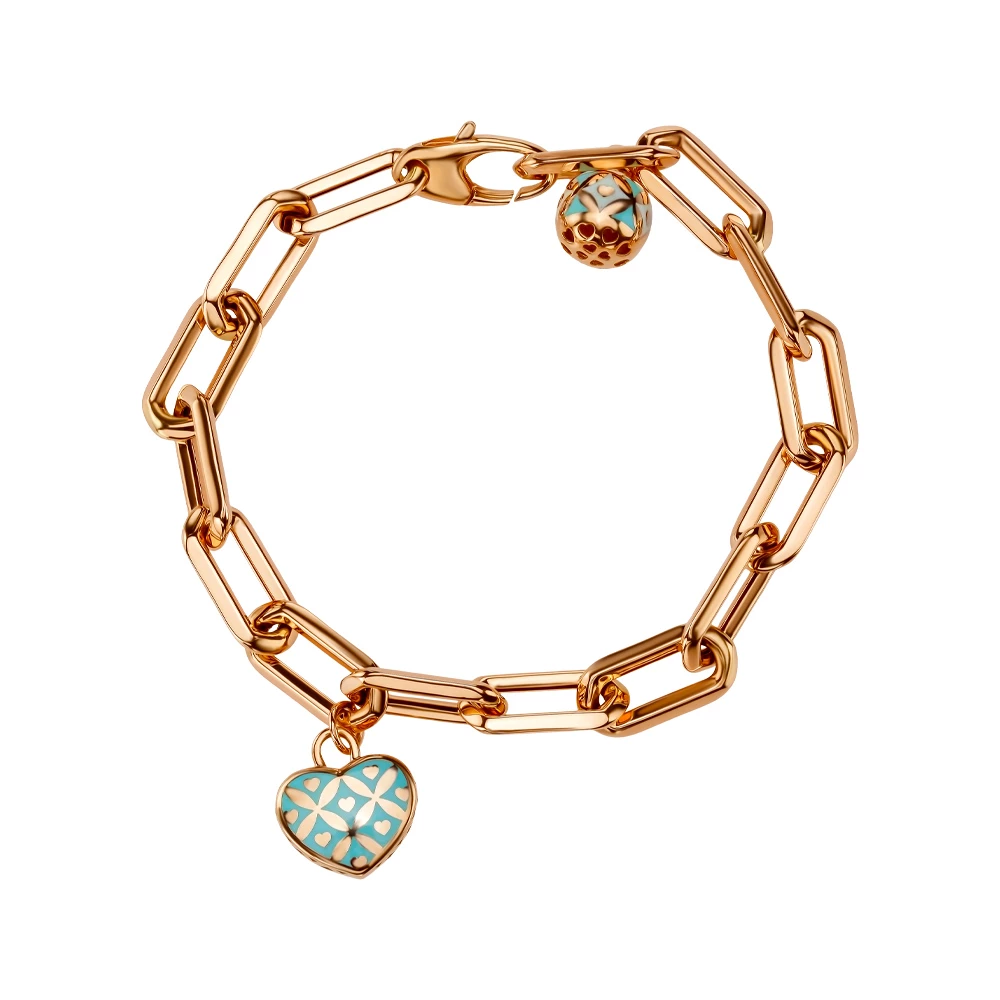 <p><strong>Размер:</strong></p> <p>Ширина – 8 мм</p> <p>Диаметр шарика – 10 мм</p> <p>Подвеска часть – 15 мм</p> <h2><strong>Золотой браслет с эмалью плетение якорное</strong></h2> <p>Эффектный браслет выполнен в красном золоте 585 пробы и его основой является объемное якорное плетение с подвесной частью в трендовом цвете Тиффани. Массивные изделия являются трендом и проявляют индивидуальный стиль владелицы. Карабиновый замок овальной формы идеально вписывается в композицию звеньев и сразу не виден. Глянцевая поверхность изделия создает эффектный блеск. Браслет достойно завершит праздничный образ и будет уместен в повседневном гардеробе</p>