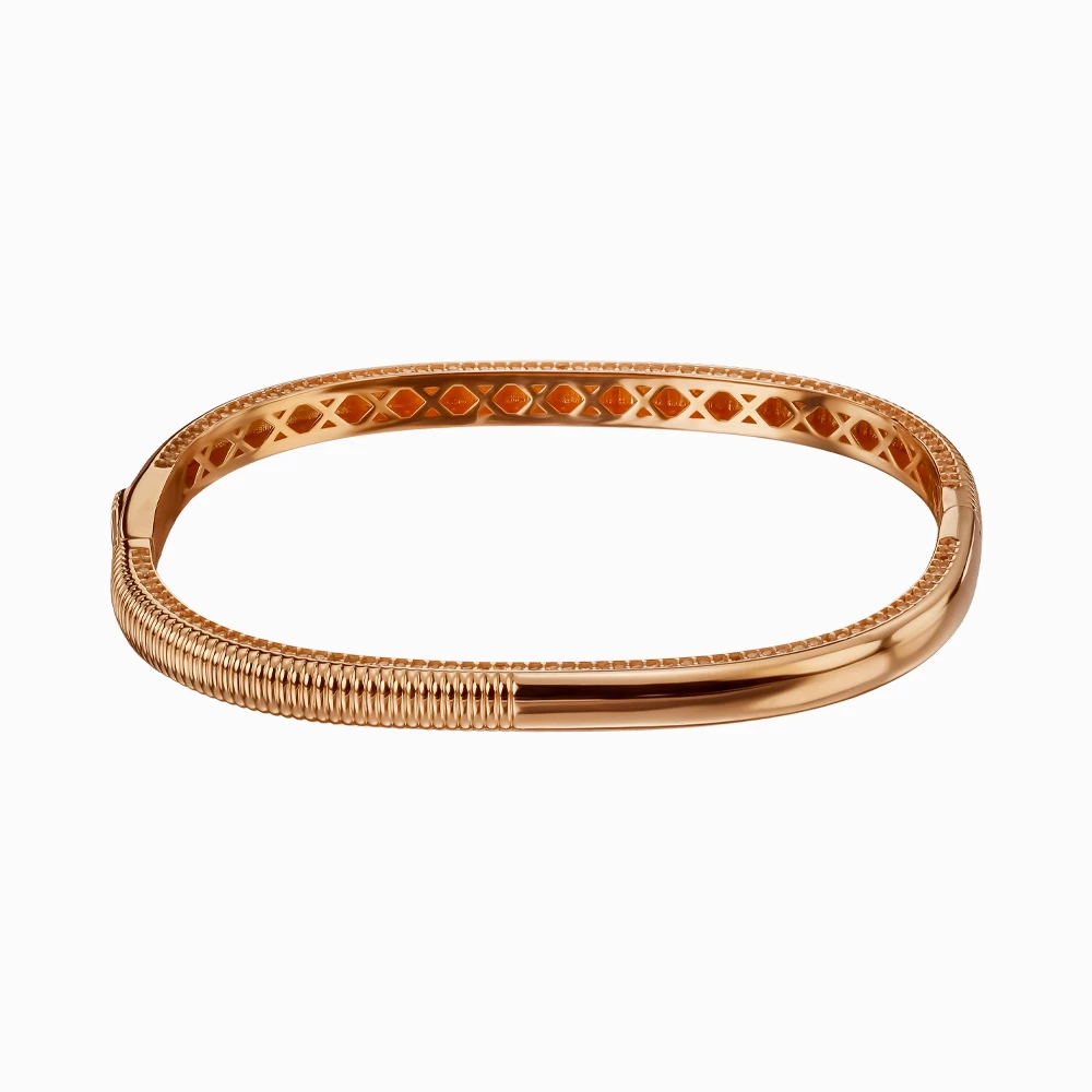 <p><strong>Размер:</strong></p> <p>Ширина – 5 мм</p> <h2><strong>Золотой браслет с куб. окс. циркония</strong></h2> <p>Жесткая форма браслета придает образу эксклюзивности и подчеркивает смелость и сильный характер его обладательницы. Украшение имеет красный цвет золота 585 пробы и боковая часть сияет благодаря фианитам. Изделие соединило в себе глянцевую поверхность и алмазную насечку, обеспечивающую блеск. Браслет удобно надевать на запястье, ведь две его части полностью раскрываются благодаря шарнирам и за фиксацию отвечает замок-коробка. Украшение подходит к классическому стилю одежды, удобен в повседневных образах и изысканных нарядах на важное событие. К нему можно добавить прямоугольные, овальные или круглые серьги, а также пусеты в чистом весе золота</p>