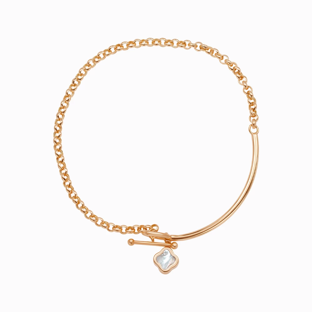 <p><strong>Размер:</strong></p> <p>Ширина – 2 мм</p> <p>Вставка – 8 мм</p> <h2><strong>Золотой браслет с перламутром плетение фантазийное</strong></h2> <p>Нежный браслет изготовлен в красном золоте 585 пробы с комбинацией жесткой части с якорным плетением, благодаря чему изделие одновременно практично и эффектно. Акцентом украшения является перламутр, олицетворяющий женственность. Его форма клевера помогает принести в жизнь удачу. Браслет фиксируется стильным т-образным замком, протягивающимся через круг. Изысканное украшение идеально дополнит праздничный образ и гардероб на каждый день и подчеркнет изящные линии запястья</p>