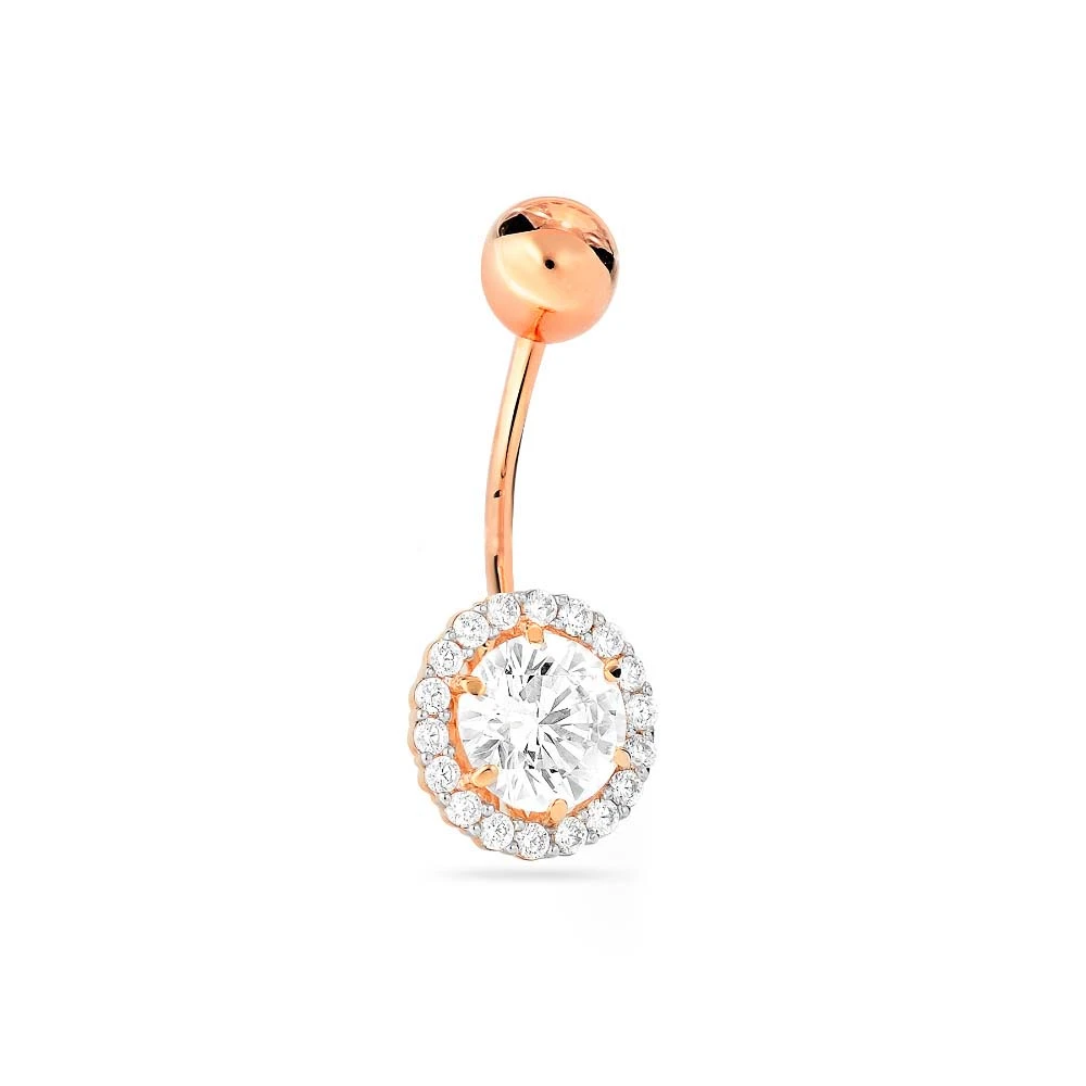 Золотой пирсинг в пупок с куб. окс. циркония.