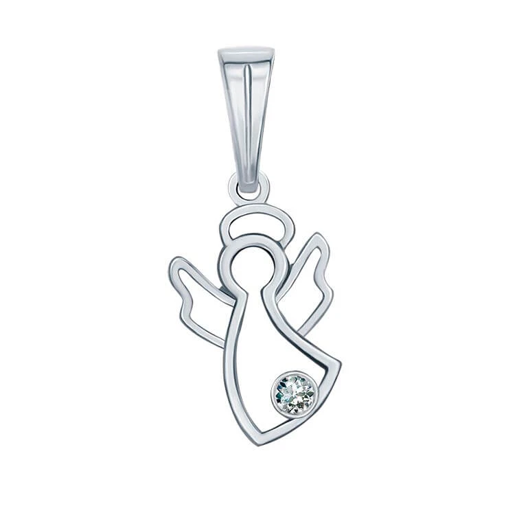 Небольшой подвес из белого золота 585 пробы в форме ангела придётся по душе всем романтичным представительницам женского пола. Изделие украшает бриллиант круглой огранки. Этот подвес также можно носить на браслете. Такое украшение, без сомнений, будет отличным подарком ребенку.