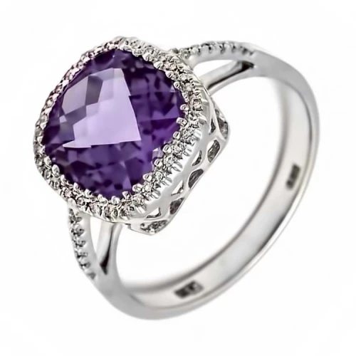 Золотая подвеска с бриллиантами с аметистом