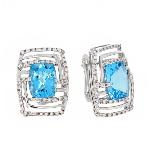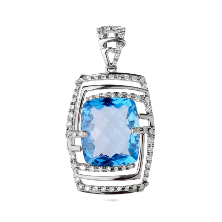 Подвес в белом золоте 585 пробы с топазами и бриллиантами. Подвес имеет эффектный, привлекательный внешний вид. Яркие топазы в инкрустации бриллиантов - отлично подчеркнут голубые глаза.