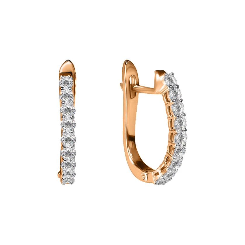 Золотые серьги , выполненные из красного золота в сочетании с нежной бриллиантовой дорожкой, которая покрывает всю переднюю часть серег - станут прекрасным подарком для дам любого возраста. Эти серьги превосходно подчеркнут Вашу уникальность и станут неотьемлемым аксессуаром как в повседневной жизни так и на любое важное событие. Данные золотые серьги будут великолепно сочетаться с любым стилем одежды.А также Вы шикарно будете выглядеть, если подберете колечко, которое идет комплектом к этим серьгам.