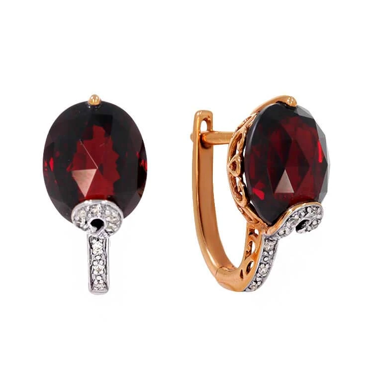 Красивые серьги из красного золота с гранатом и блестящими бриллиантами. Серьги с гранатом всегда привлекут внимание к вашему образу.