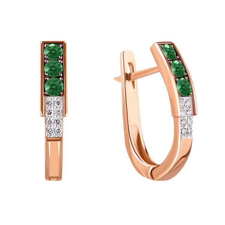 Золотые серьги с бриллиантами с изумрудом гидротермальным