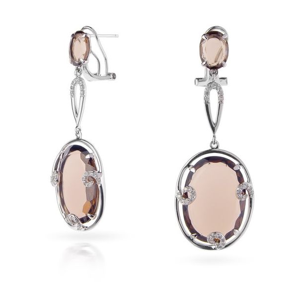Серьги из белого золота с кварц дымчатый и бриллиантами. Эти великолепные серьги, украшенные кварцем, придадут неповторимого очарования своей обладательнице. Размеры изделия, мм: ширина - 16,5; высота - 45,3.