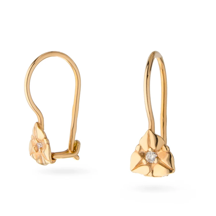 <p><strong>Размер:</strong></p> <p>длина серьги - 14 мм</p> <p>ширина серьги - 6 мм</p> <p>диаметр петли - 7 мм</p> <h2><strong>Золотые серьги с кубическим оксидом циркония.</strong></h2> <p>Оригинальные серьги из красного золота 585 пробы созданы для юной модницы. Они обладают очень нежным дизайном в виде цветочка, посередине которого размещен прозрачный фианит круглой огранки. Вставка надежно зафиксирована корнеровой закрепкой. Французская застежка на серьгах идеально подходит для ежедневного ношения, ведь она легко надевается и комфортна для детских ушек.</p> <p>Эти серьги могут стать приятным подарком к важному событию, они обязательно вызовут восторг у каждой девочки и станут изюминкой любого детского образа.</p>