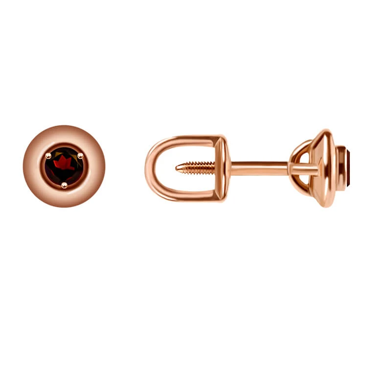Серьги-пусеты из красного золота с гранатом. Универсальные и элегантные золотые серьги-пусеты с гранатом можно надеть не только на работу, но и дополнить ими повседневный и даже вечерний образ.