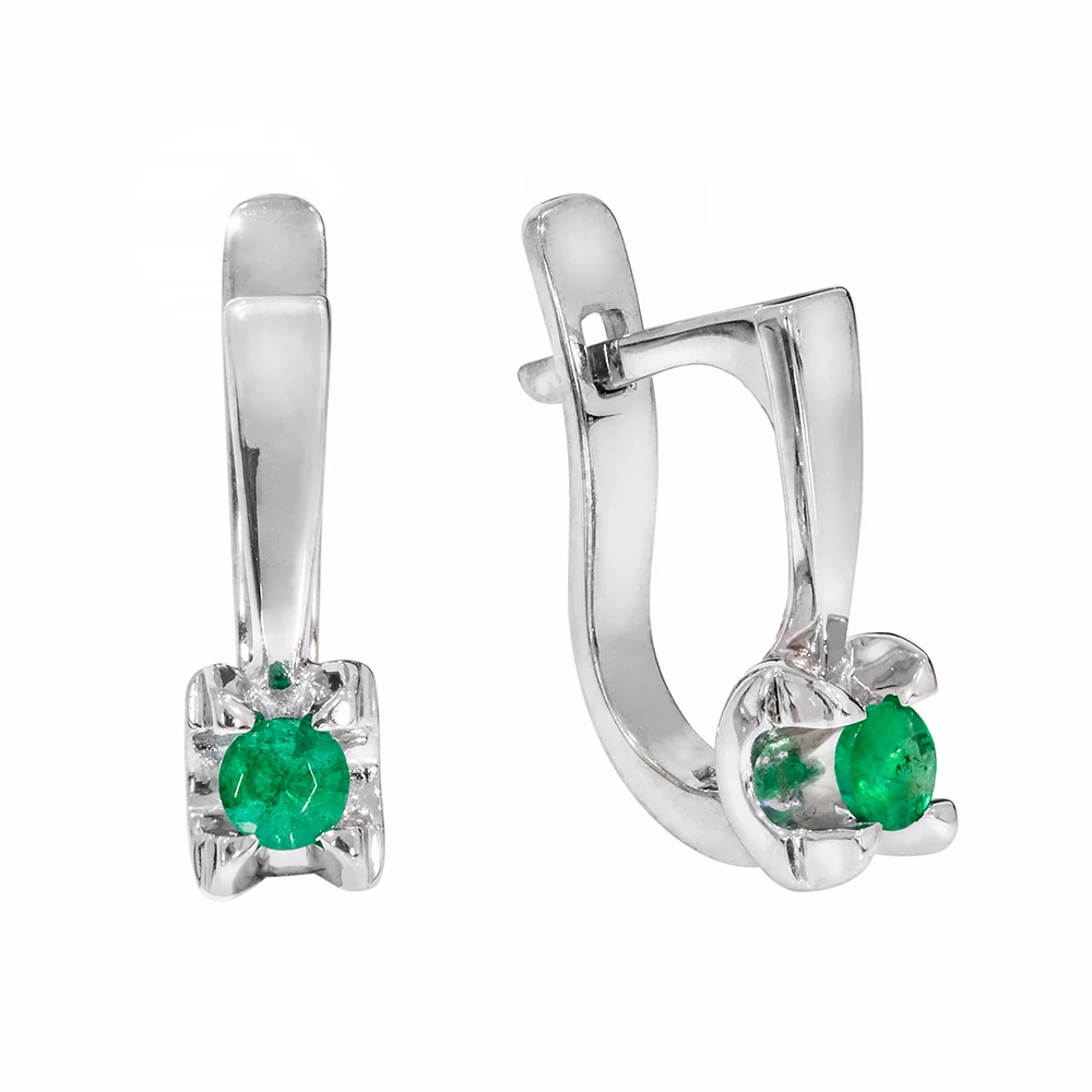 Серьги из белого золота 585 пробы украшеные благородным изумрудом станут ярким акцентом Вашего безупречного образа. Английский тип застежки. Размеры изделия: - высота передней части серег - 14мм - размер декоративной части - 3,5х6мм