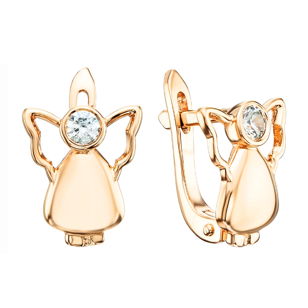 <p><strong>Размер:</strong></p> <p>Длина – 1,5 см</p> <p>Ширина – 9 мм</p> <p>Длина крючка - 6 мм</p> <p>Вставка – 3 мм</p> <h2><strong>Золотые серьги с кубическим оксидом циркония.</strong></h2> <p>Представленное изделие изготовлено в виде фигурки ангелочка. В состав входит красное золото 585 пробы и кубический оксид циркония (фианит). Камень фианита помещен в глухую оправу. Ободковая закрепка считается одной из самых надежных, поэтому можно не опасаться потери камня. Тип застёжки – английская. Серьги легко надевать и снимать, но при этом они прочно фиксируются в мочке ушка.</p> <p>Такие серьги подойдут для детей. Подарите их своей маленькой принцессе на ее день рождения или просто так, без повода. Носить аксессуар можно как ежедневно, так и в честь особой даты. Изделие сочетается со всеми стилями одежды.</p>