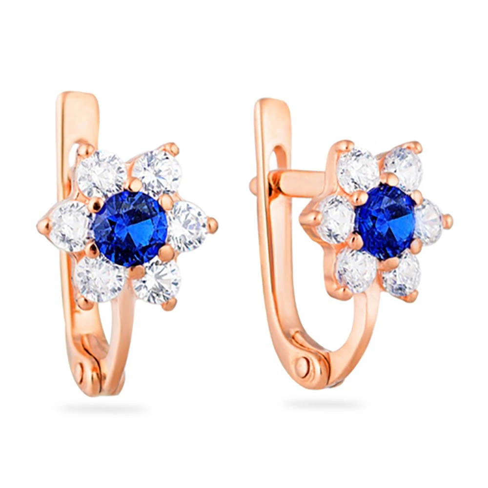 <p><strong>Размер:</strong></p> <p>длина серьги – 9 мм</p> <p>длина крючка к застежке – 6 мм</p> <p>диаметр вставки - 8 мм</p> <h2><strong>Золотые сережки с фианитами.</strong></h2> <p>Великолепные детские серьги из красного золота 585 пробы и фианитами. Их изюминкой является удивительный цветочек из фианитов, в основе которого лежит изысканный синий фианит, поражающий своей глубиной. Каждый камешек искусно закреплен в крапановом касте, эта композиция создает поразительный блеск и сияние. Удобная английская застежка позволяет носить это украшение с комфортом каждый день, надежно фиксируя серьги на ушках. Такое изящное изделие, несомненно, станет любимым аксессуаром для настоящей маленькой модницы и поможет создать для нее непревзойденный образ.</p>
