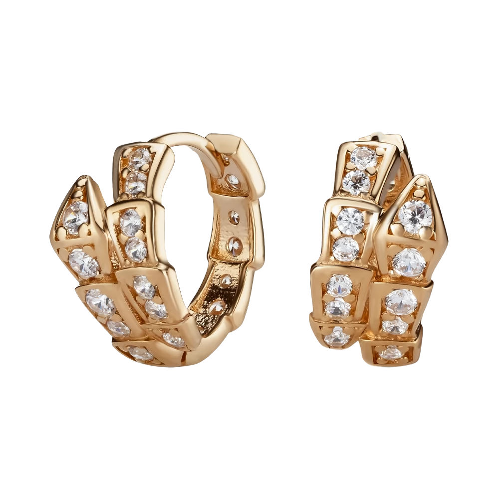 <p><strong>Размеры:</strong></p> <p>диаметр - 1,2 см</p> <p>ширина - 0,7 см</p> <h2><strong>Золотые серьги-конго с фианитом</strong></h2> <p>Серьги изготовлены из драгоценного ювелирного металла - красного золота 585 пробы. Дизайн выполненный в форме колец имитирующих змею. Тело змеи выполнено в виде сегментов и украшено сверкающими фианитами круглой огранки. Серьги-конго имеют надежную застежку, комфортны на ухе и подходят для повседневной носки. Трендовое изделие со змеями станет ярким акцентом любого Вашего наряда, подойдет как под торжественные образы, так и под офисный или расслабленный стиль одежды и станет изюминкой Вашего гардероба.</p>
