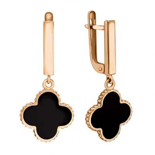 Золотые серьги-подвески с эмалью (арт. 400267В)