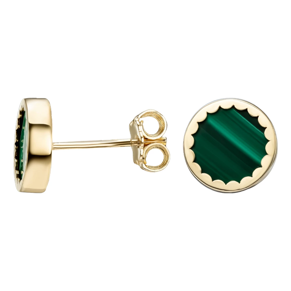 Золотые серьги-пусети с малахитом (арт. 396215)
