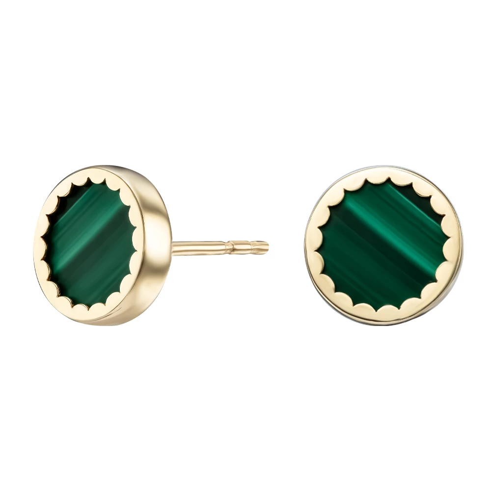<p><strong>Размер:</strong></p> <p>длина штифта – 10 мм</p> <p>размер декоративной части – 7 х 7 мм</p> <h2><strong>Золотые серьги-пусеты с малахитом</strong></h2> <p>Эти удивительные серьги-пусеты изготовлены из желтого золота 585 пробы и украшены натуральным малахитом - камнем, поражающим глубоким насыщенно-зеленым цветом с характерными для него линиями. Вставка обрамлена тонким золотым ободком с декоративной волнистой окантовкой, что придает дизайну шарма и оригинальности. Штифтовая застежка обеспечивает удобную и надежную фиксацию на ухе. Эти серьги идеально дополнят как повседневный, так и вечерний образ, подчеркивая изысканный вкус своей обладательницы. Малахит считается камнем защиты и гармонии, так что такое украшение станет не только стильным аксессуаром, но и особым талисманом.</p>