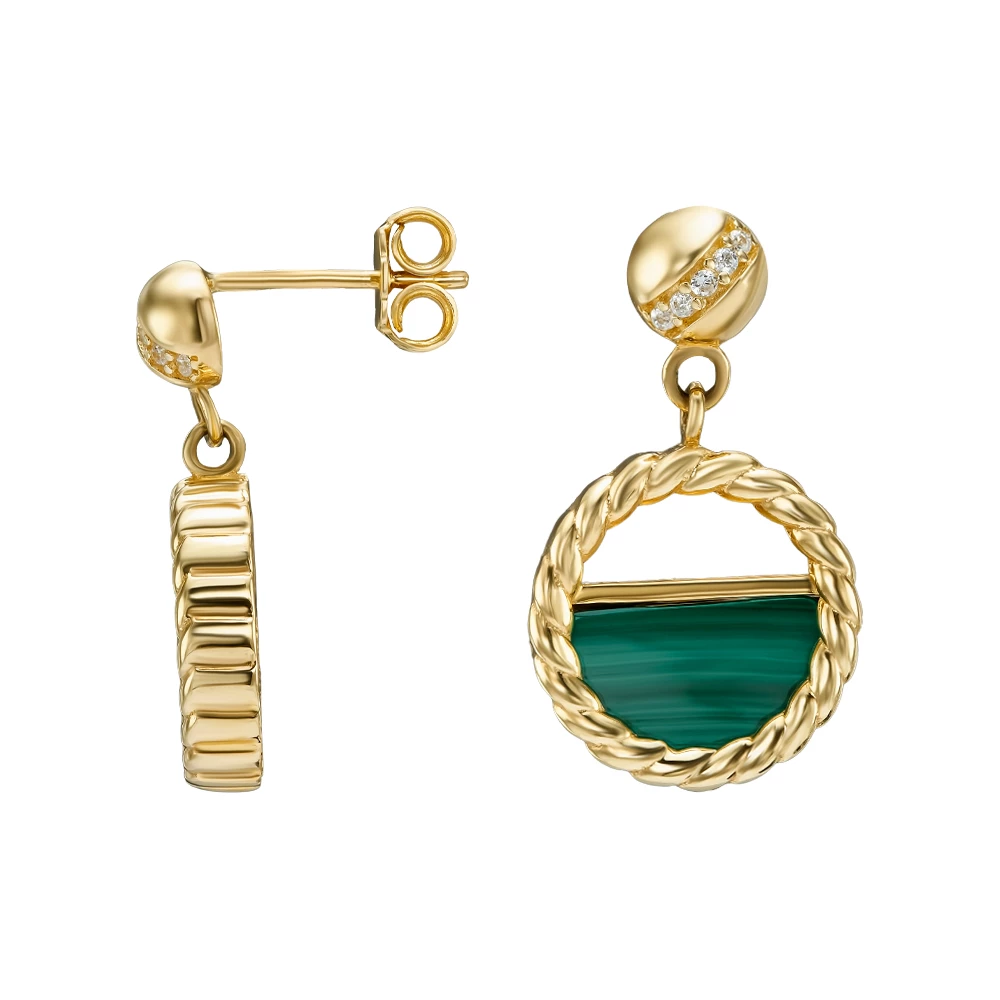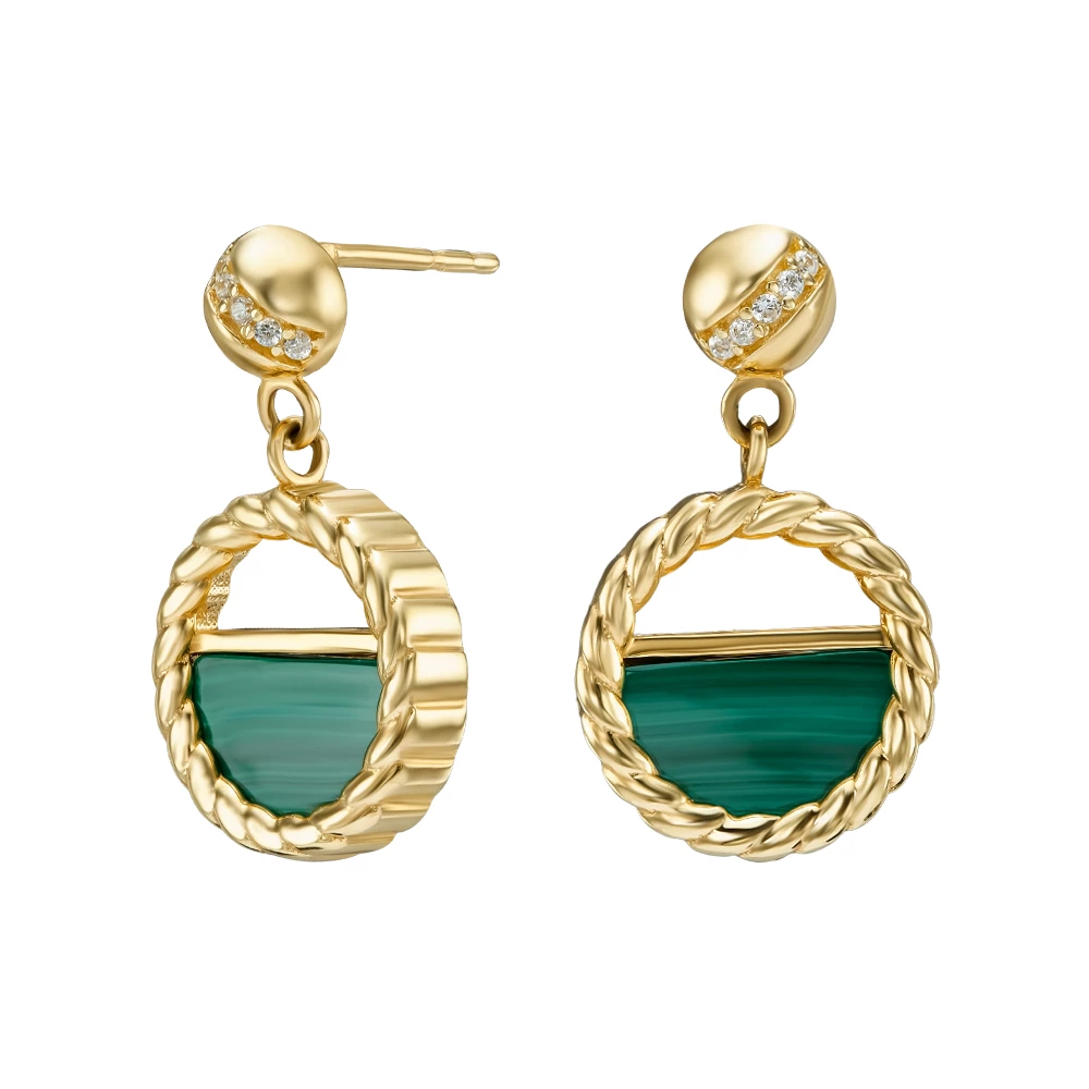 Золотые серьги-пусети с малахитом